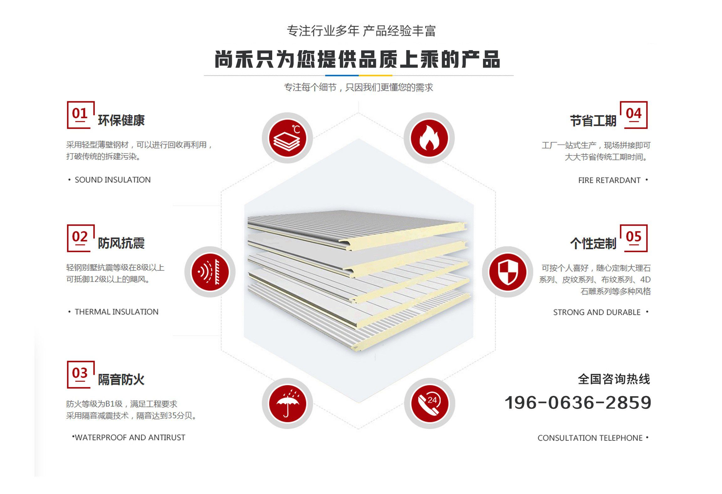 山東尚禾經貿有限公司是集板材設計、研發、生產、施工、一體化的科技公司,并在同行業中率先通過了質量、環境、安全管理體系認證。公司2011年投入資金2000余萬元引進世界先進的聚氨酯節能板連續生產線、意大利進口發泡系統,采用六組份在線自動操作混合澆注技術,在線一次性完成社會配料中心或工廠的配比混合工藝,并可以根據溫度在線自動調整,從而生產處與眾不同的高強度、節能型、綠色環保的聚氨酯夾芯板。(其使用年限高于同行業其他品牌5-10年) 公司主要經營范圍包括聚氨酯夾芯板,PU夾芯板,冷庫板,潔凈板,聚氨酯冷庫板,冷庫保溫板的設計、生產、銷售、技術指導、安裝及一體、以及進出口業務,是中部六省最大的綠色節能建材生產基地。聚氨酯夾芯板年產200萬平方米、PU夾芯板、冷庫保溫板500萬平方米、鏈整產業綜合實力,開創了六省至中西部創新型中小名企總部基地,并將著力推進中國中西部地區集成房屋住宅產業化發展進程?! 】萍紕撔隆⒐澞艿浞?。千萬間始終秉承“誠信、合作”的企業文化精髓,長期致力于鋼板材結構節能建筑產業,愿與社會各界攜手合作,共鑄綠色、環保美好未來。 產品具有良好的絕熱、阻燃、隔音、環保、耐久性能,可廣泛應用于工業、商用建筑內外墻、以及民用建筑外墻保溫、空調通風系統、專用防火保溫門等領域。 我們始終秉承...